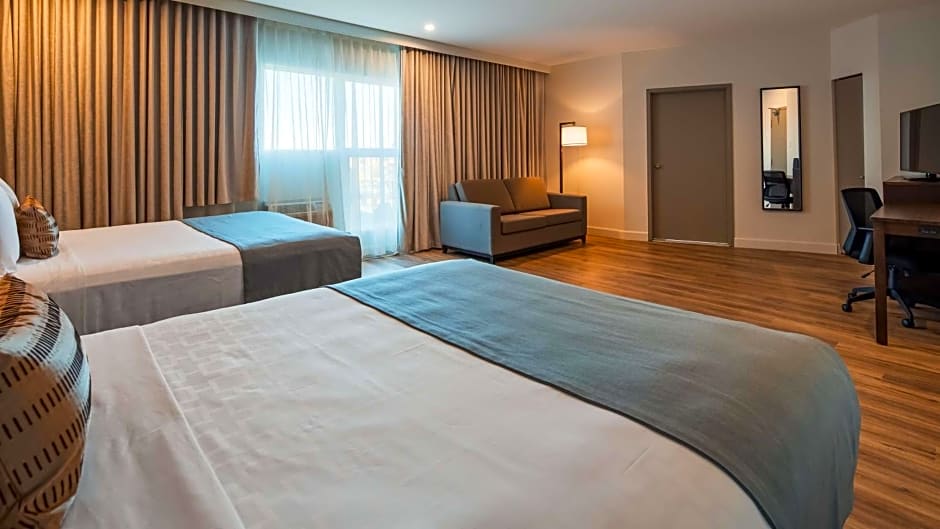 Air-conditioned room with a private balcony, satellite TV, mini fridge and hairdryer.